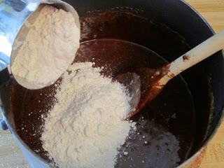 While the wet ingredients are being creamed together, it is time to mix the dry ingredients. To four cups of flour, add a teaspoon of salt, a teaspoon of baking powder and a teaspoon of cinnamon.